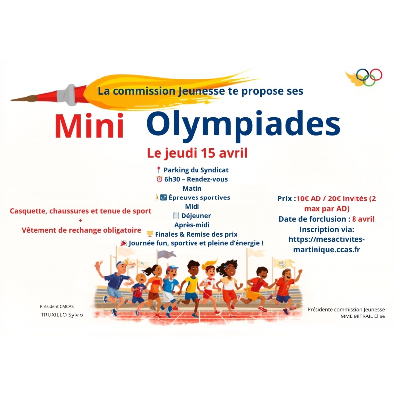 La Commission Jeunesse propose à tes enfants de participer aux Mini Olympiades, une journée sportive, ludique.